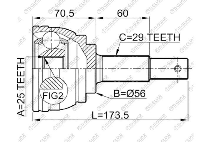 ШРУС наружный /правый /левый /TI-GUAR для Nissan Teana 2003-2005 PJ31 3.5L VQ35DE TNJ31 2.5L QR25DE 4WD; 25*56*29; TG-7490; (0210-J31 NI-090) 392119Y300 391009Y115 391019Y115